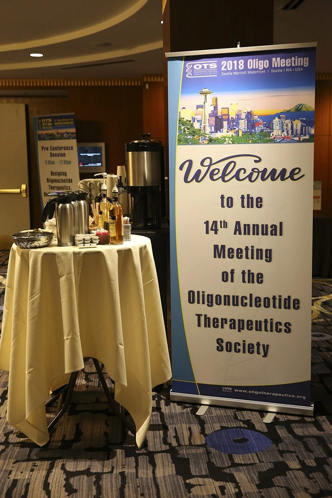 The 14th annual meeting of the Oligonucleotide Therapeutics Society took place at the Marriott Seattle Waterfront hotel in Seattle, USA, from the 30th of September to the 3rd of October. With nearly 600 attendees and 150 posters, it was the biggest OTS meeting yet. Perhaps it was the Society’s increased social media engagement and educational efforts (E.g.Twitter @OTSociety, Local delivery program and webinars) that spread the word? Or maybe it was the widely publicised approval of ONPATTRO (the first siRNA drug) at the end of August or the “Spinraza” effect (the first oligonucleotide therapeutic to achieve blockbuster drug status)? Or perhaps the CRISPR and mRNA therapy sessions attracted people that would not normally attend? The field is clearly experiencing an upswing – truly the dawning of the age of oligonucleotide therapeutics!
