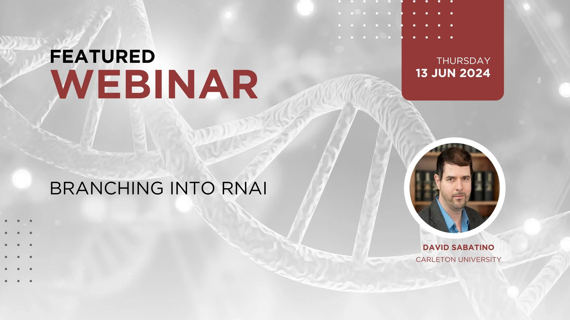 Date: June 13, 2024 Time: 8am PDT / 11am EDT / 5pm CEST Title: Branching into RNAi Description: Our research focuses on the synthetic short-interfering RNAs (siRNAs) that silences the oncogenic mRNA expression of the Glucose Regulated Proteins (GRPs) leading to ...