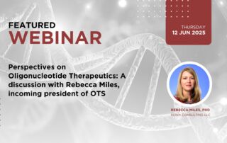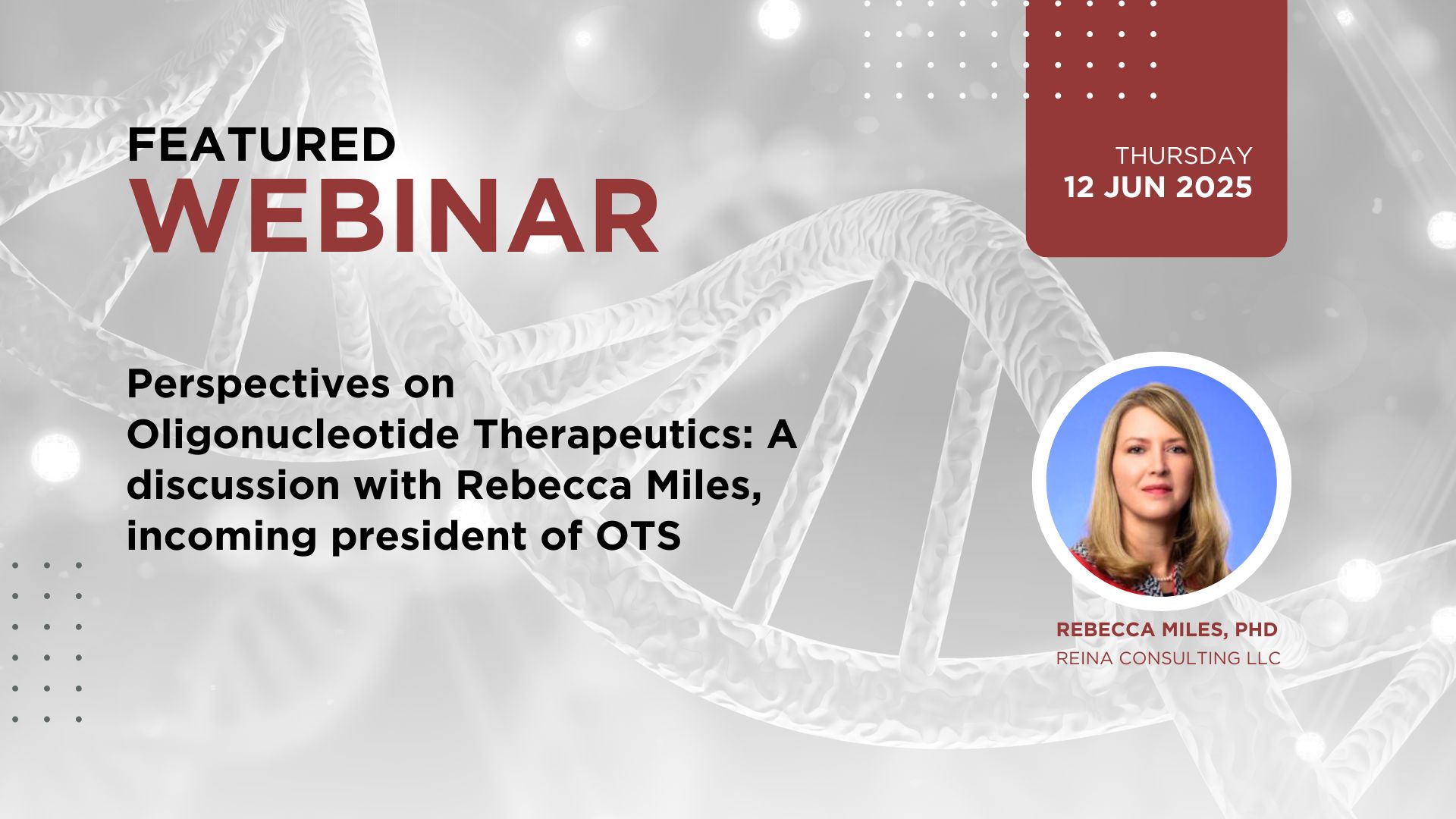 Date: June 12, 2025 Time: 11-12pm EDT / 5-6pm CEST Title: Perspectives on Oligonucleotide Therapeutics: A discussion with Rebecca Miles, incoming president of OTS Presentation Description: In this interview, Dr. Rebecca Miles, the president-elect of the Oligonucleotide Therapeutics Society, will discuss the evolving landscape of oligonucleotide ...