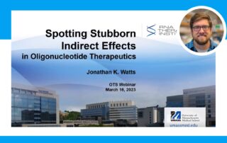Time: 4pm CET Date: March 16, 2023 We use chemistry to improve the properties of nucleic acid therapeutics including antisense oligonucleotides, siRNAs, and genome editing approaches. I will walk through a recent study we carried out trying to activate frataxin expression to treat Friedreich’s Ataxia. We did a ...