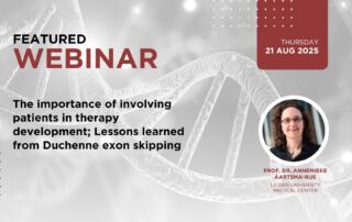 Date: August 21, 2025 Time: 11-12pm EDT / 5-6pm CEST Title: The importance of involving patients in therapy development; Lessons learned from Duchenne exon skipping Description: Duchenne muscular dystrophy is a progressive muscle wasting disease caused by lack of dystrophin protein. The exon skipping approach uses ...