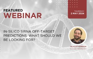 Date: May 2, 2024 Time: 8am PDT / 11am EDT / 5pm CEST Title: In-silico siRNA Off-Target Predictions: What Should We Be Looking For? Description: Assessing sequence-dependent off-target risks is a critical step during siRNA development to ensure the safety and specificity of therapeutic candidate molecules. ...