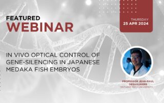 Time: 8am PDT / 11am EDT / 5pm CEST Date: April 25, 2024 Title: In vivo Optical Control of Gene-Silencing in Japanese Medaka Fish Embryos Description: The siRNA oligonucleotide duplex inherent to biology, functions by binding and cleaving mRNA, a process known as the RNA interference ...