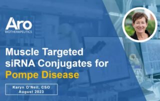 Time: 8AM PST / 11AM EST / 5PM CET Date: August 3, 2023 Aro Biotx is focused on developing Centyrin-siRNA conjugates for treatment of extrahepatic genetic diseases. Our lead program employs a CD71 Centyrin for targeting to muscle together with an siRNA for glycogen synthase 1 for the ...